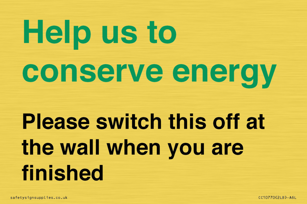 Help us to conserve energy - Please switch this off at the wall when you are finished Sign