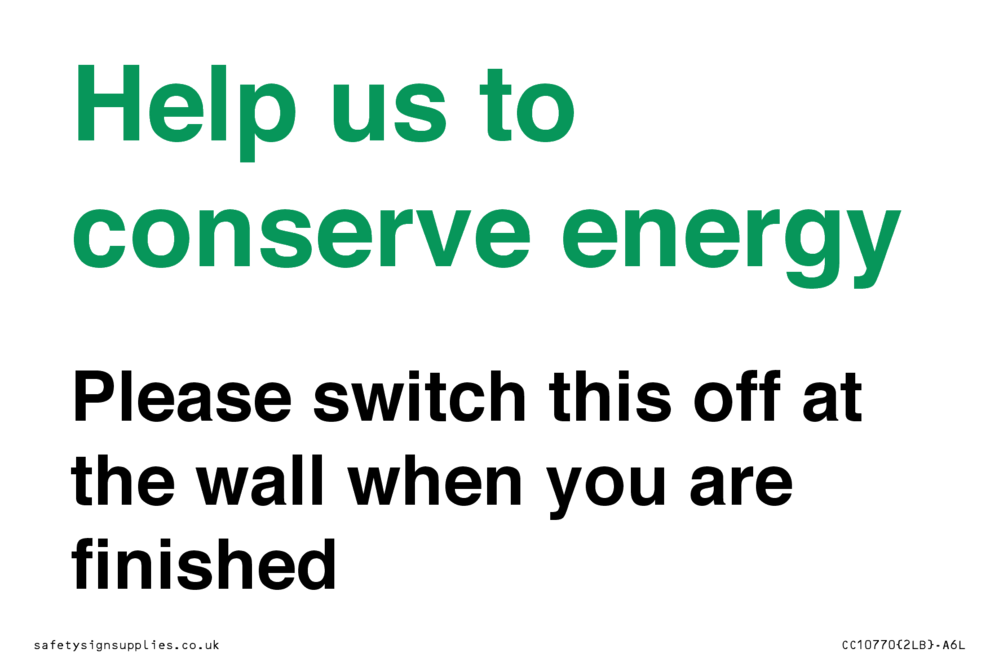 Help us to conserve energy - Please switch this off at the wall when you are finished Sign