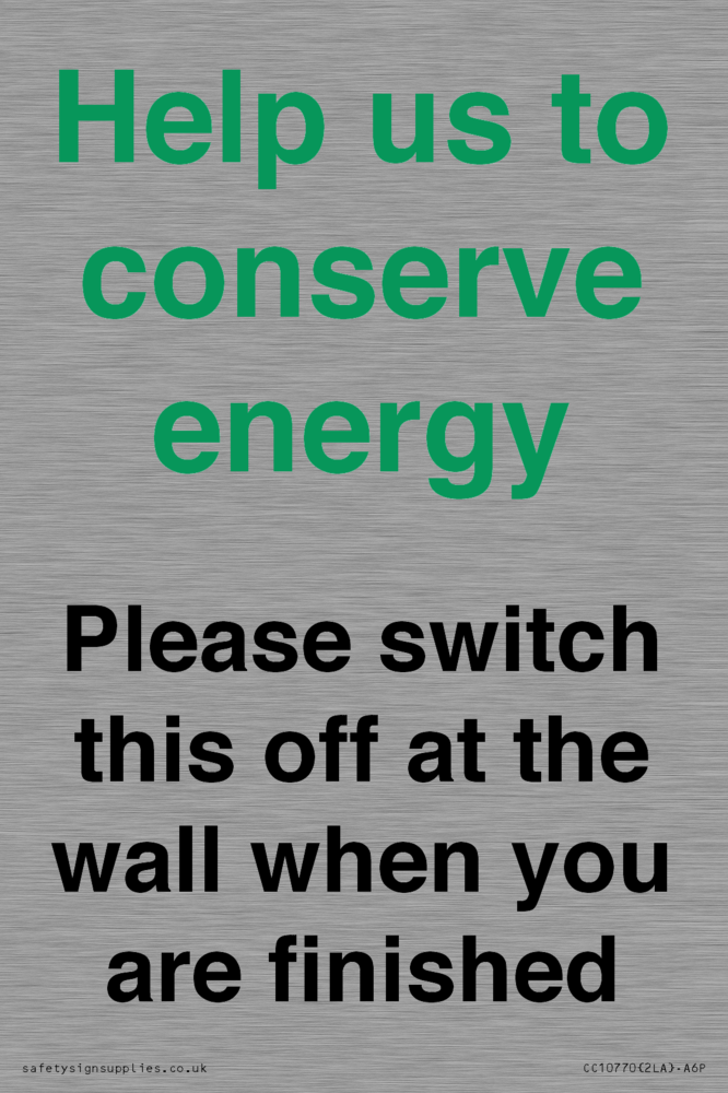 Help us to conserve energy - Please switch this off at the wall when you are finished Sign