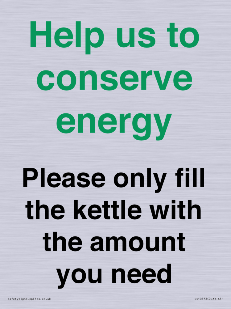 Help us to conserve energy - Please only fill the kettle with the amount you need Sign