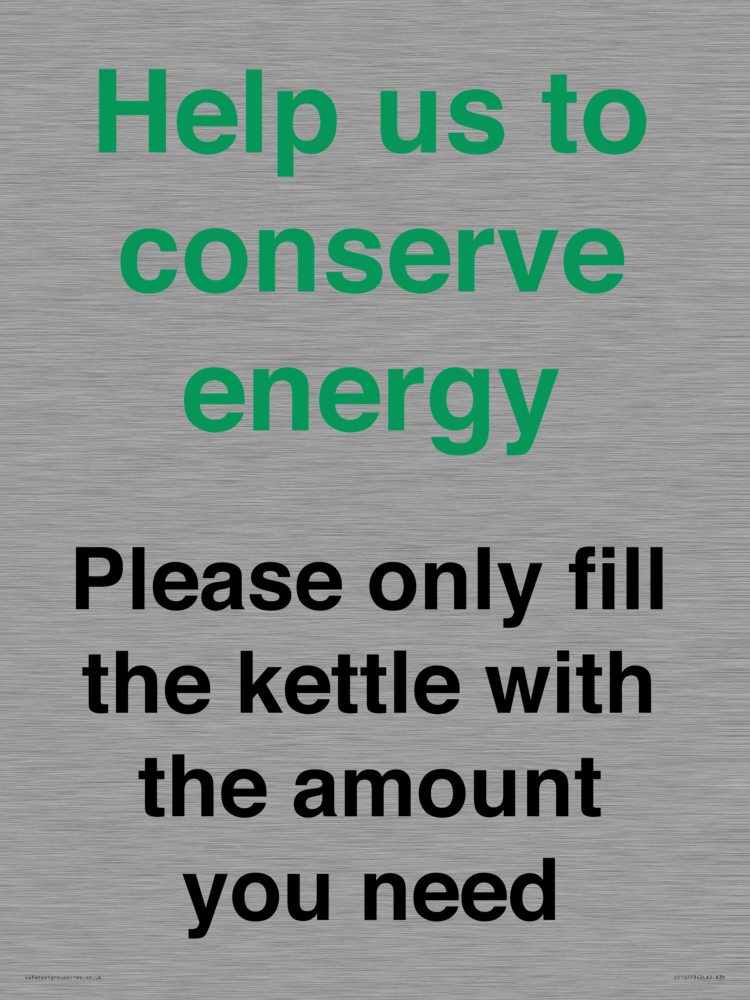 Help us to conserve energy - Please only fill the kettle with the amount you need Sign