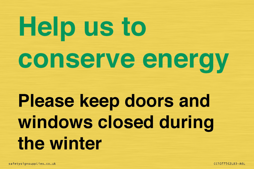 Help us to conserve energy - Please keep doors and windows closed during the winter Sign