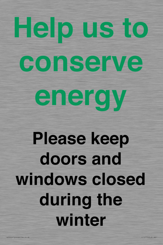 Help us to conserve energy - Please keep doors and windows closed during the winter Sign