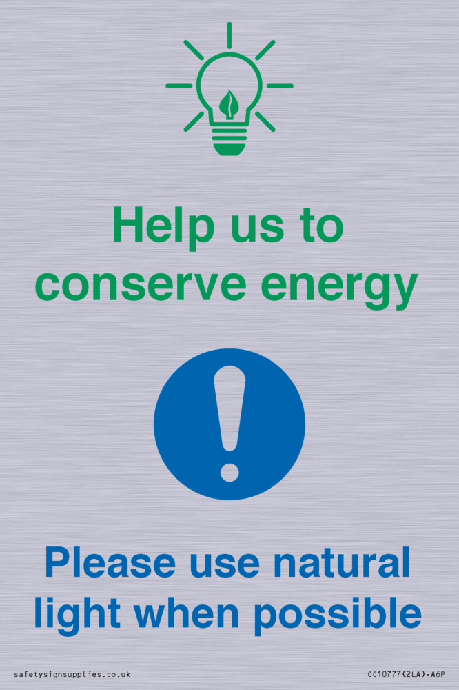 Help us to conserve energy - Please use natural light when possible Sign