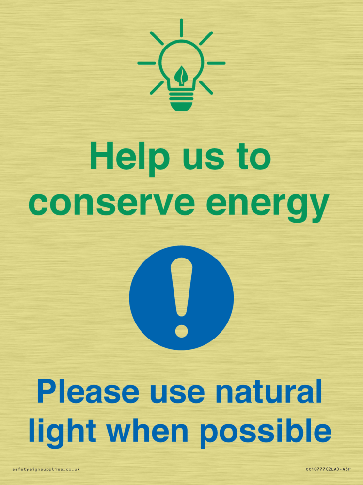Help us to conserve energy - Please use natural light when possible Sign