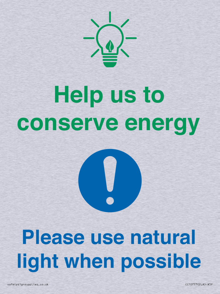 Help us to conserve energy - Please use natural light when possible Sign