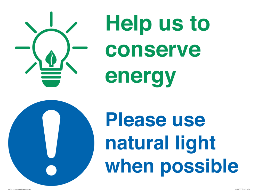 Help us to conserve energy - Please use natural light when possible Sign