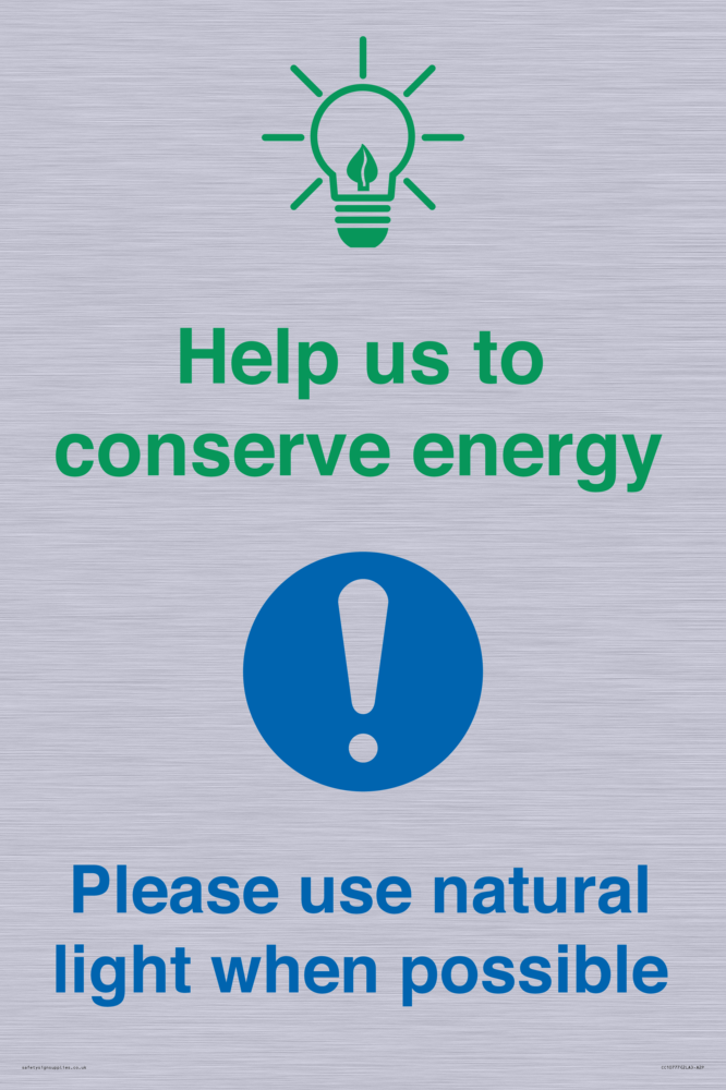 Help us to conserve energy - Please use natural light when possible Sign