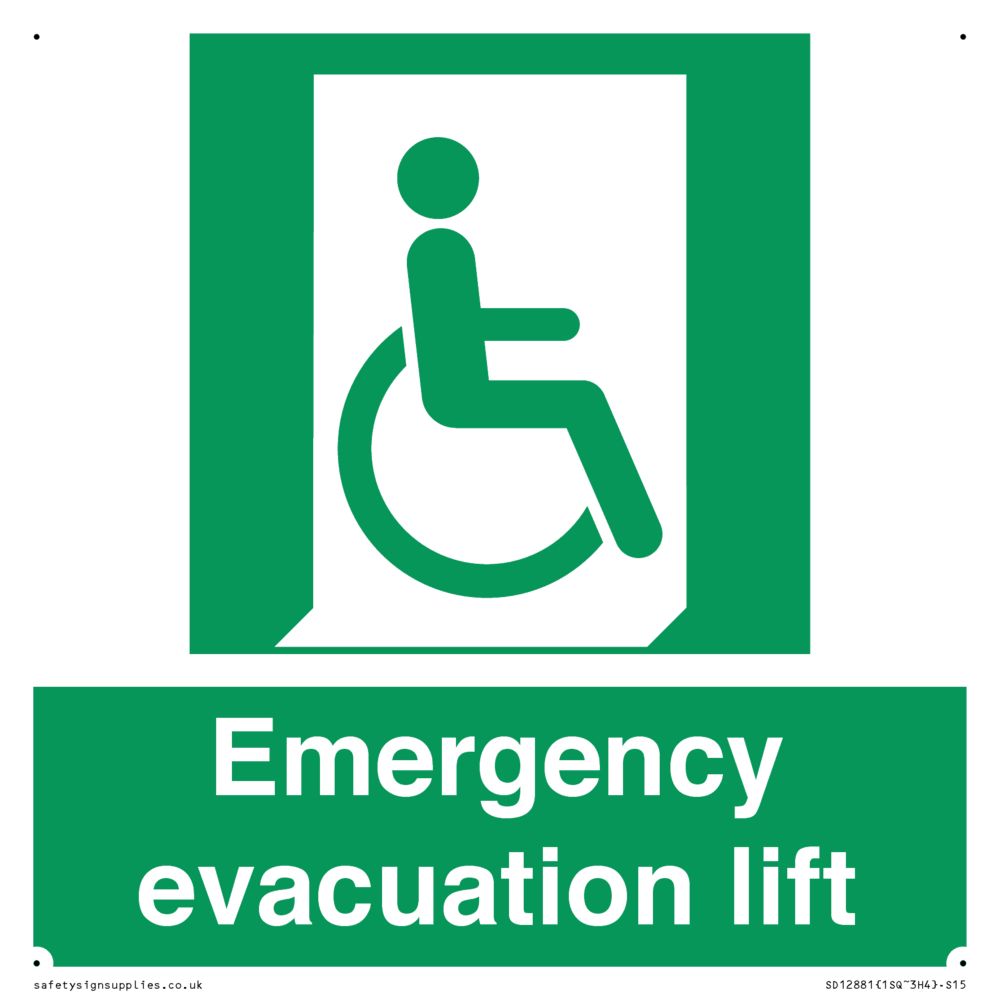Function: To indicate an escape route to a place of safety usable by people unable to walk or with walking impairment.