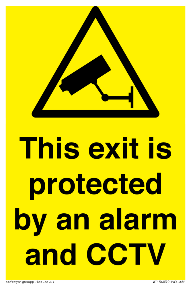 Sign Text: This exit is protected by an alarm and CCTV Dimensions: 100x150mm Material: Aluminium composite 3mm with lamination Orientation: Portrait Text Colour: White Background Colour: Yellow More...