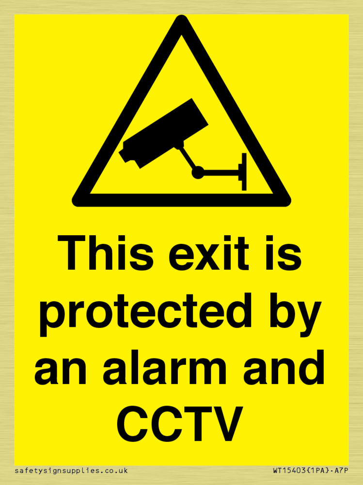 Sign Text: This exit is protected by an alarm and CCTV Dimensions: 75x100mm Material: Champagne Aluminium Orientation: Portrait Text Colour: White Background Colour: Yellow More...