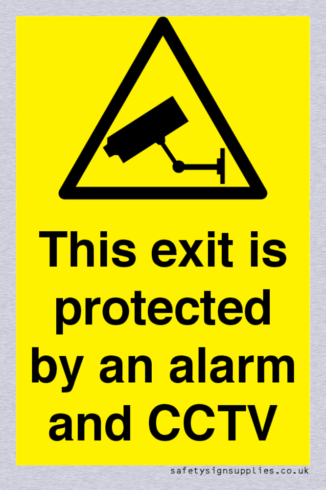 Sign Text: This exit is protected by an alarm and CCTV Dimensions: 50x75mm Material: Satin Silver Aluminium Orientation: Portrait Text Colour: White Background Colour: Yellow More...