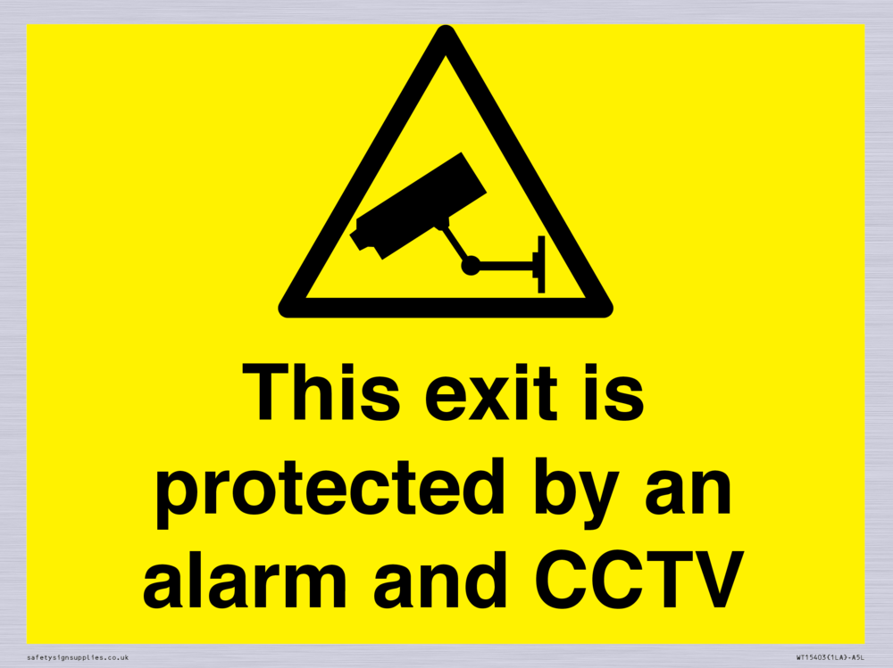 Sign Text: This exit is protected by an alarm and CCTV Dimensions: 200x150mm Material: Plastic Semi-rigid Silver Orientation: Landscape Text Colour: White Background Colour: Yellow More...