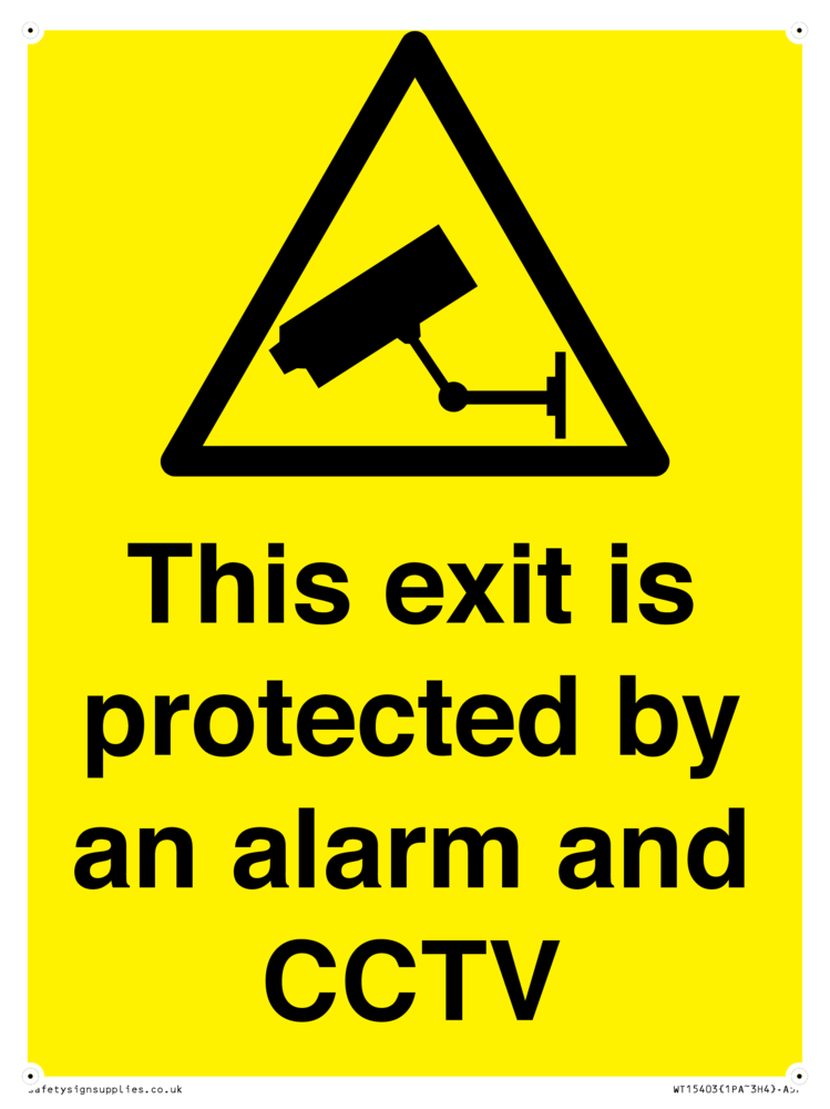Sign Text: This exit is protected by an alarm and CCTV Dimensions: 150x200mm Material: Plastic Rigid 3mm Orientation: Portrait Text Colour: White Background Colour: Yellow More...