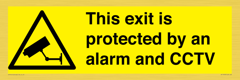 Sign Text: This exit is protected by an alarm and CCTV Dimensions: 600x200mm Material: Vinyl Gold sticker Text Colour: White Background Colour: Yellow Thickness / Depth: 64microns More...