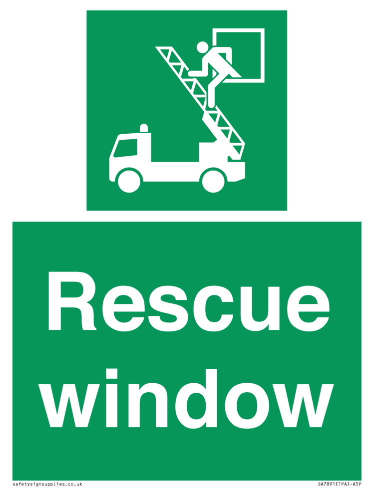 Function: To indicate the location of a rescue window where people can be rescued by a ladder by intervention forces.