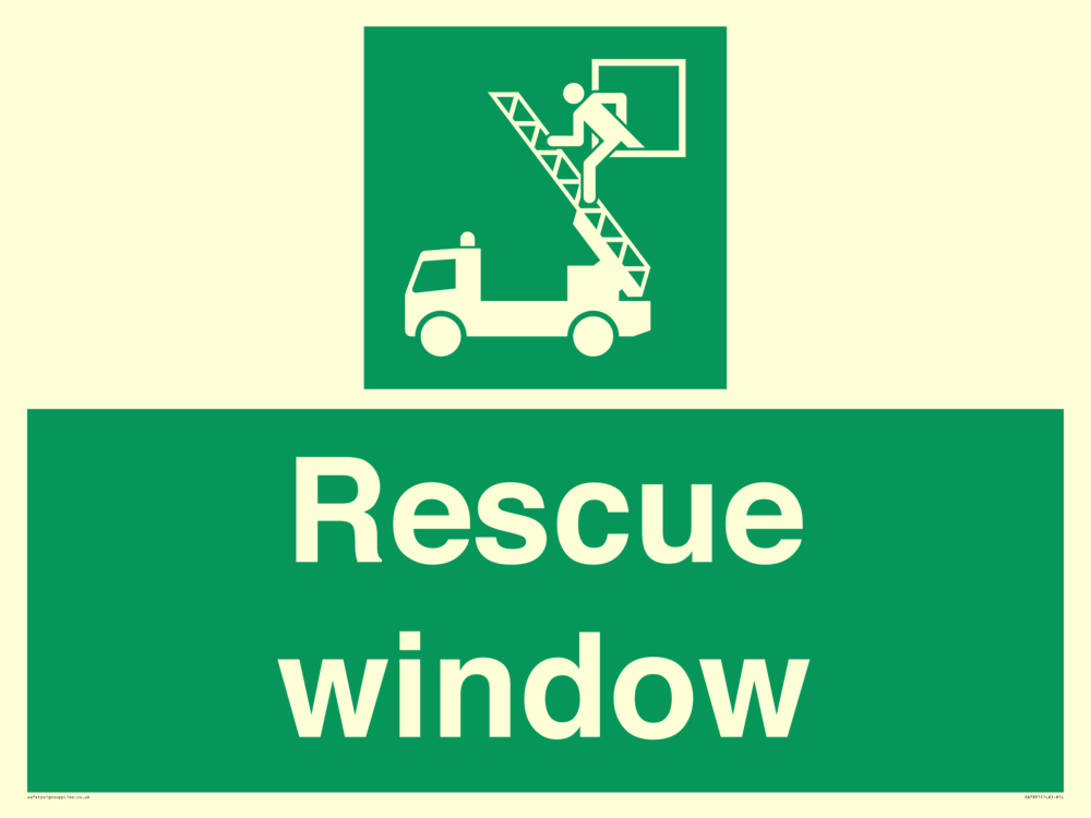 Function: To indicate the location of a rescue window where people can be rescued by a ladder by intervention forces.