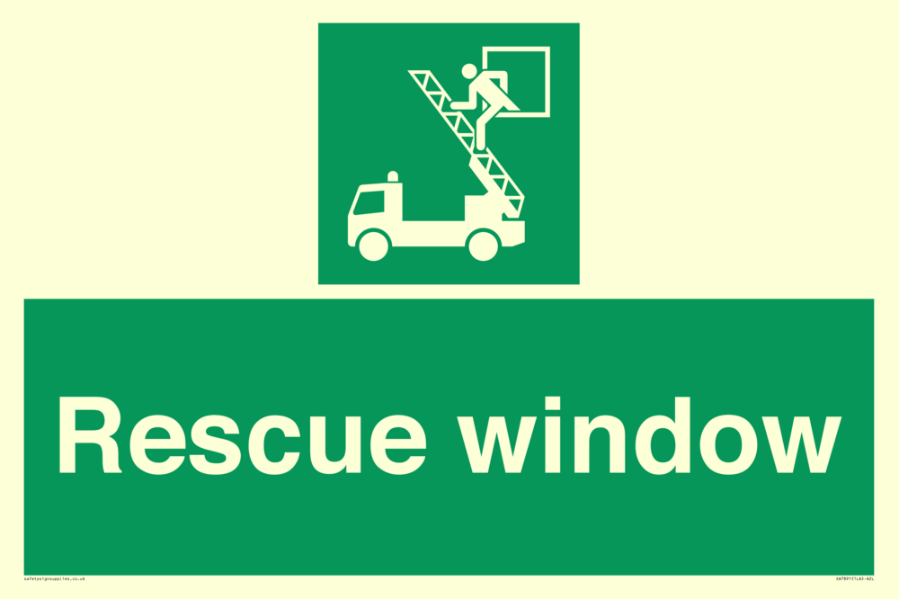 Function: To indicate the location of a rescue window where people can be rescued by a ladder by intervention forces.