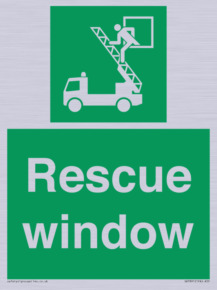 Function: To indicate the location of a rescue window where people can be rescued by a ladder by intervention forces.