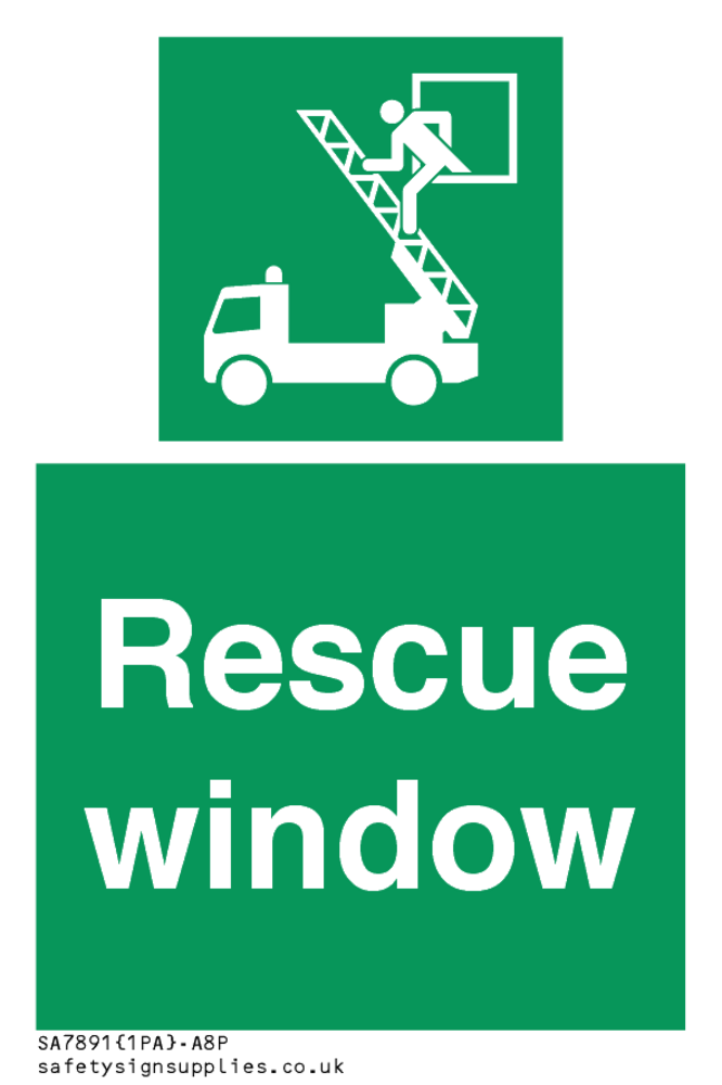 Function: To indicate the location of a rescue window where people can be rescued by a ladder by intervention forces.