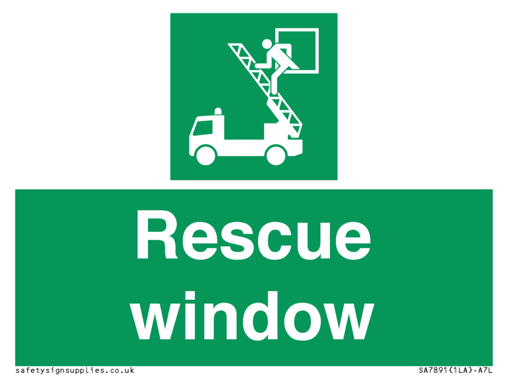 Function: To indicate the location of a rescue window where people can be rescued by a ladder by intervention forces.