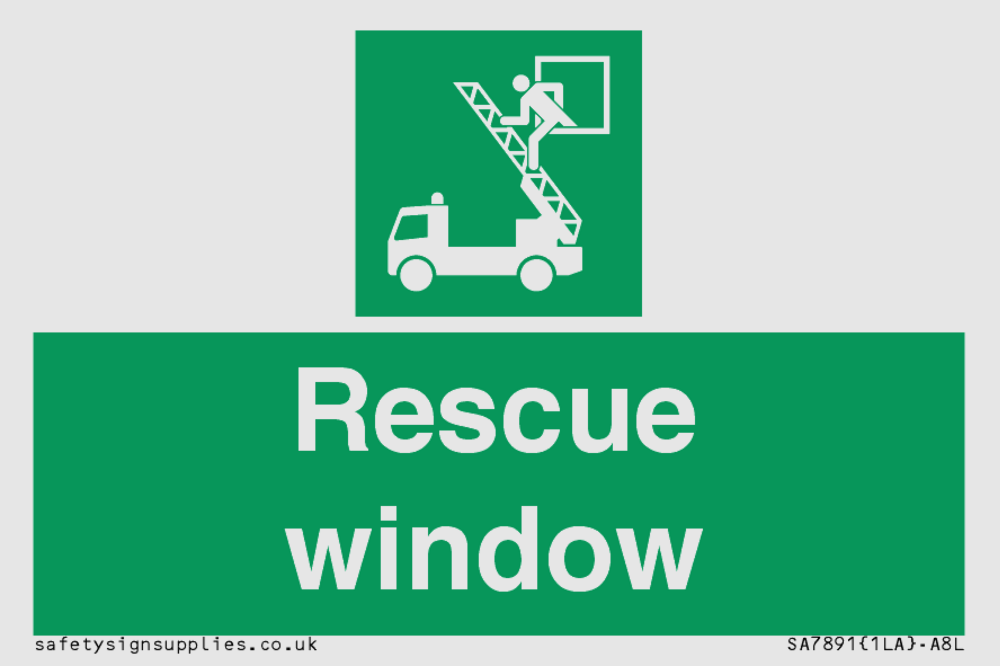 Function: To indicate the location of a rescue window where people can be rescued by a ladder by intervention forces.