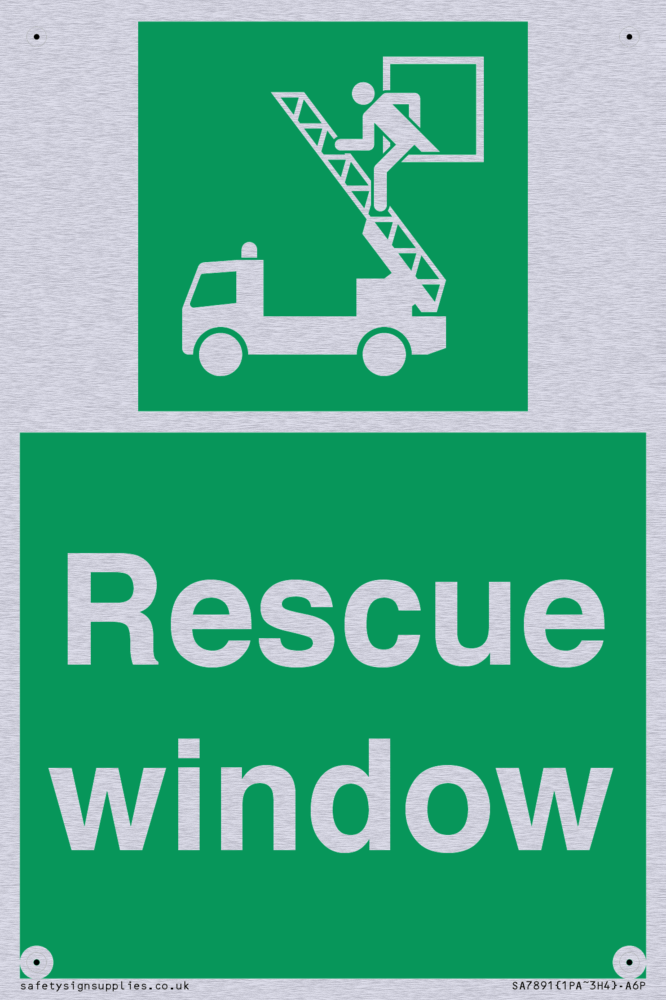 Function: To indicate the location of a rescue window where people can be rescued by a ladder by intervention forces.