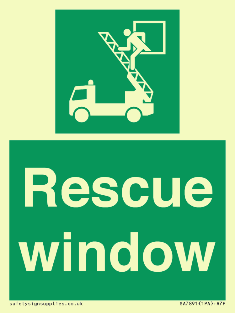 Function: To indicate the location of a rescue window where people can be rescued by a ladder by intervention forces.