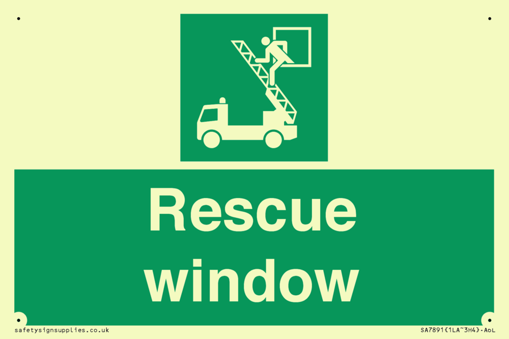 Function: To indicate the location of a rescue window where people can be rescued by a ladder by intervention forces.