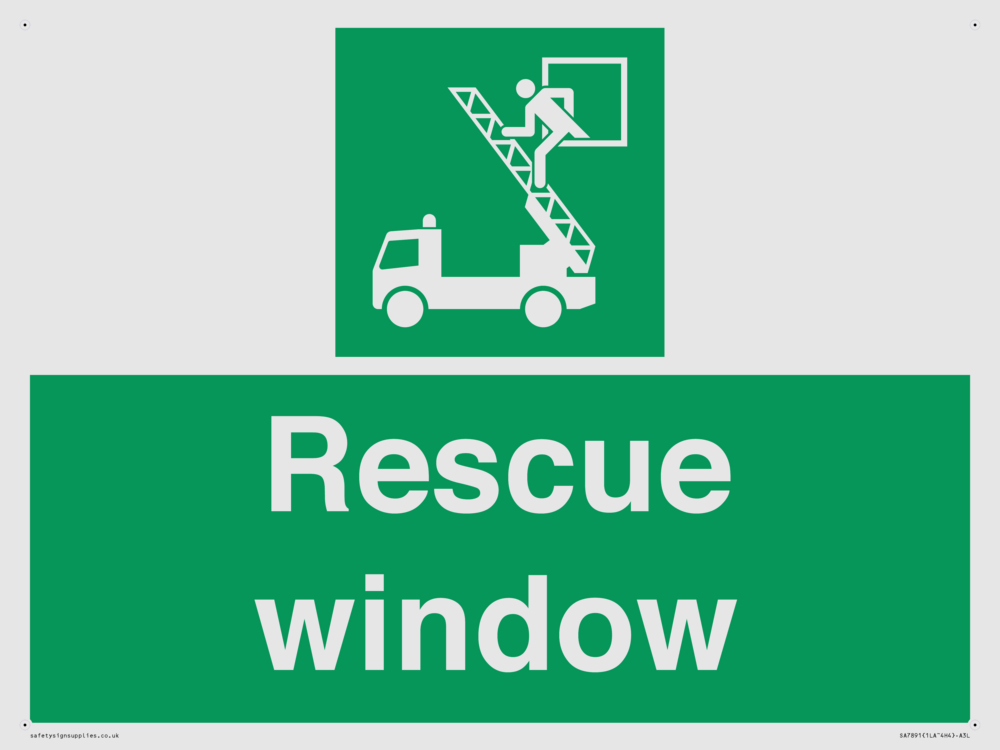 Function: To indicate the location of a rescue window where people can be rescued by a ladder by intervention forces.