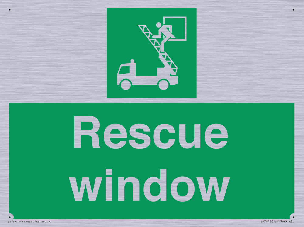 Function: To indicate the location of a rescue window where people can be rescued by a ladder by intervention forces.