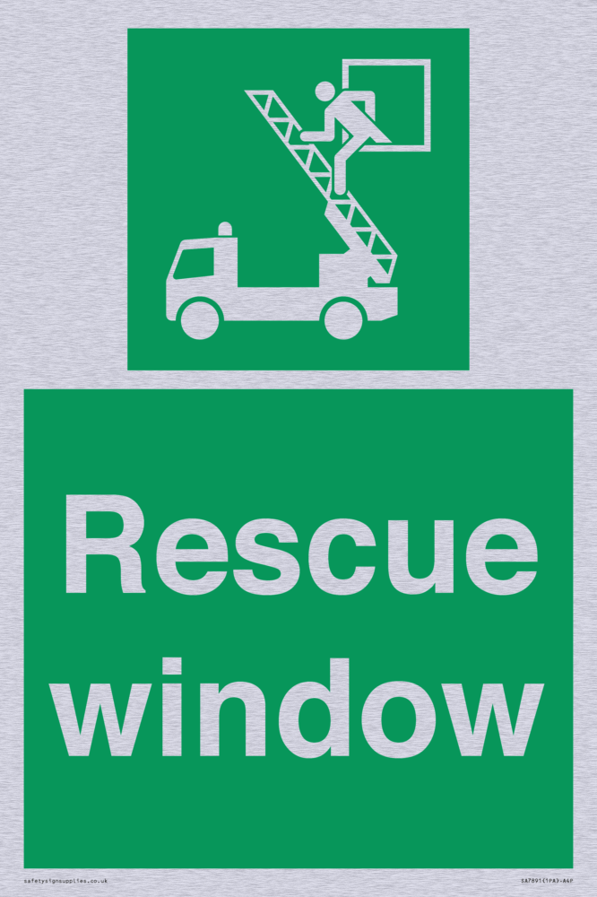 Function: To indicate the location of a rescue window where people can be rescued by a ladder by intervention forces.