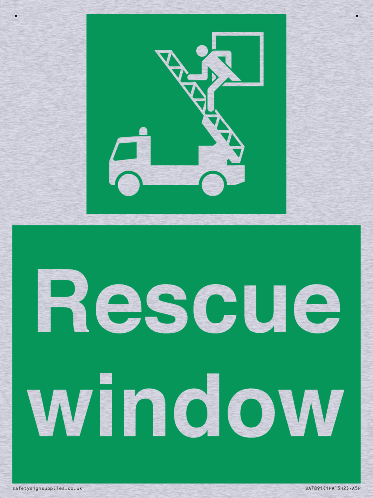 Function: To indicate the location of a rescue window where people can be rescued by a ladder by intervention forces.
