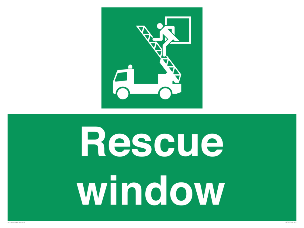 Function: To indicate the location of a rescue window where people can be rescued by a ladder by intervention forces.
