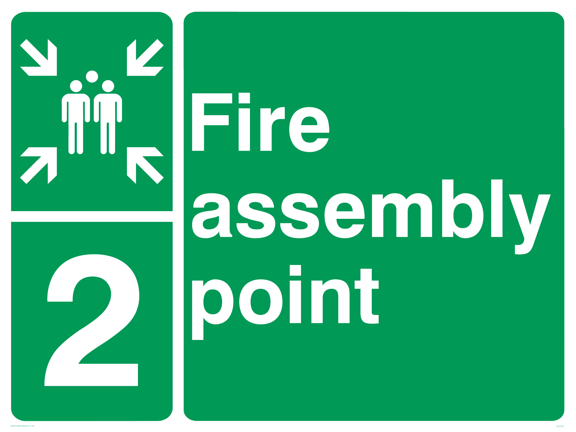 Assembly point signs indicate the location and purpose of fire or emergency assembly and refuge points.