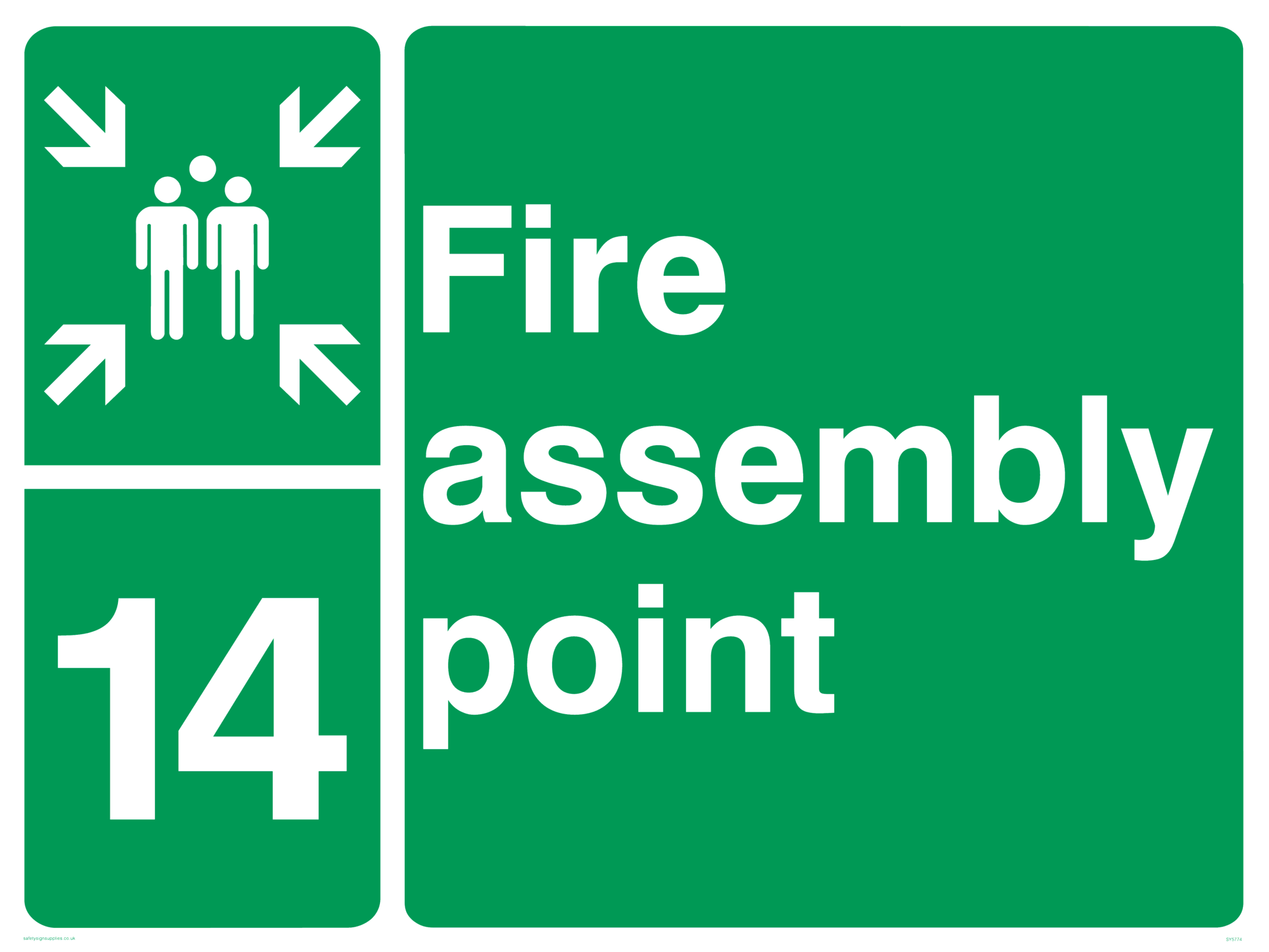 assembly point symbol with zone or unique reference of 14 (fourteen)