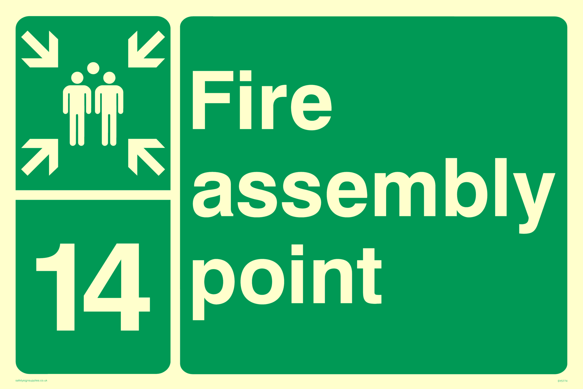 assembly point symbol with zone or unique reference of 14 (fourteen)