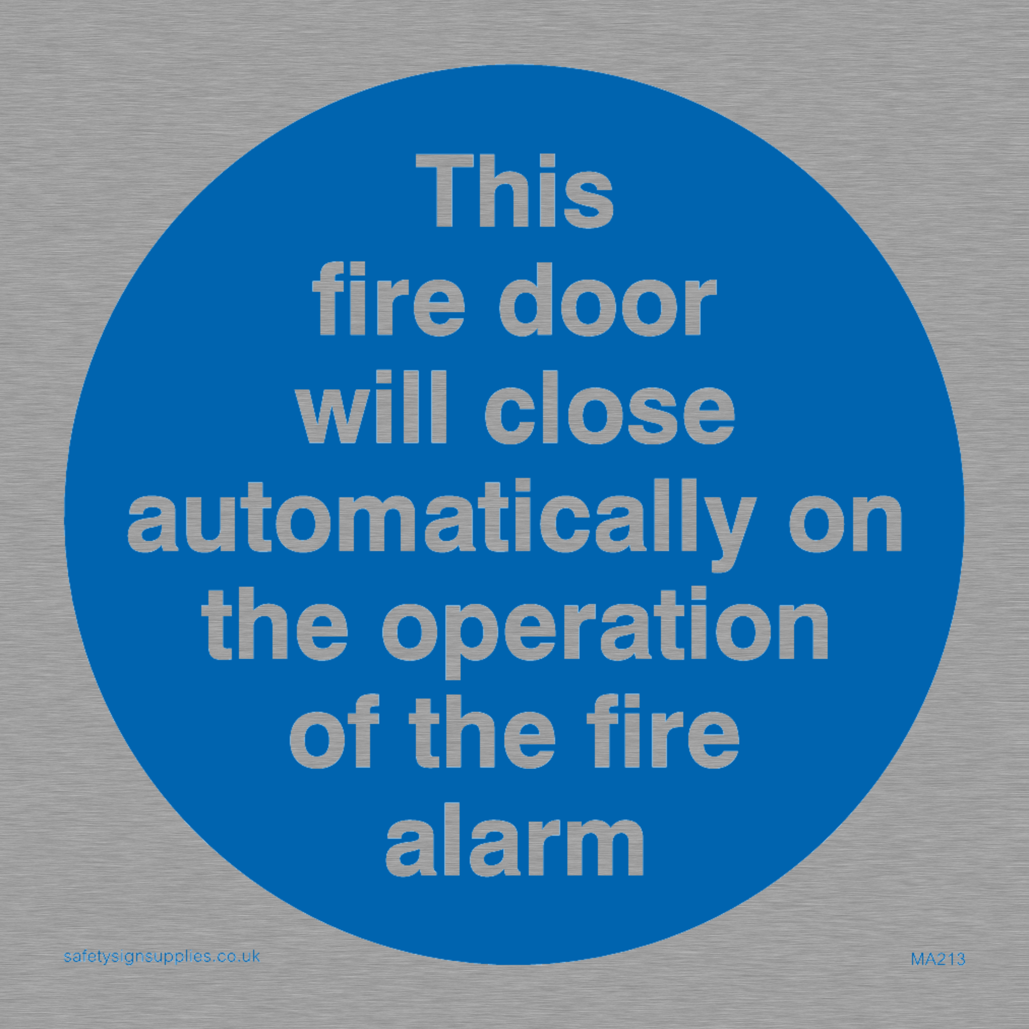 Sign Text: This fire door will close automatically on the operation of the fire alarm