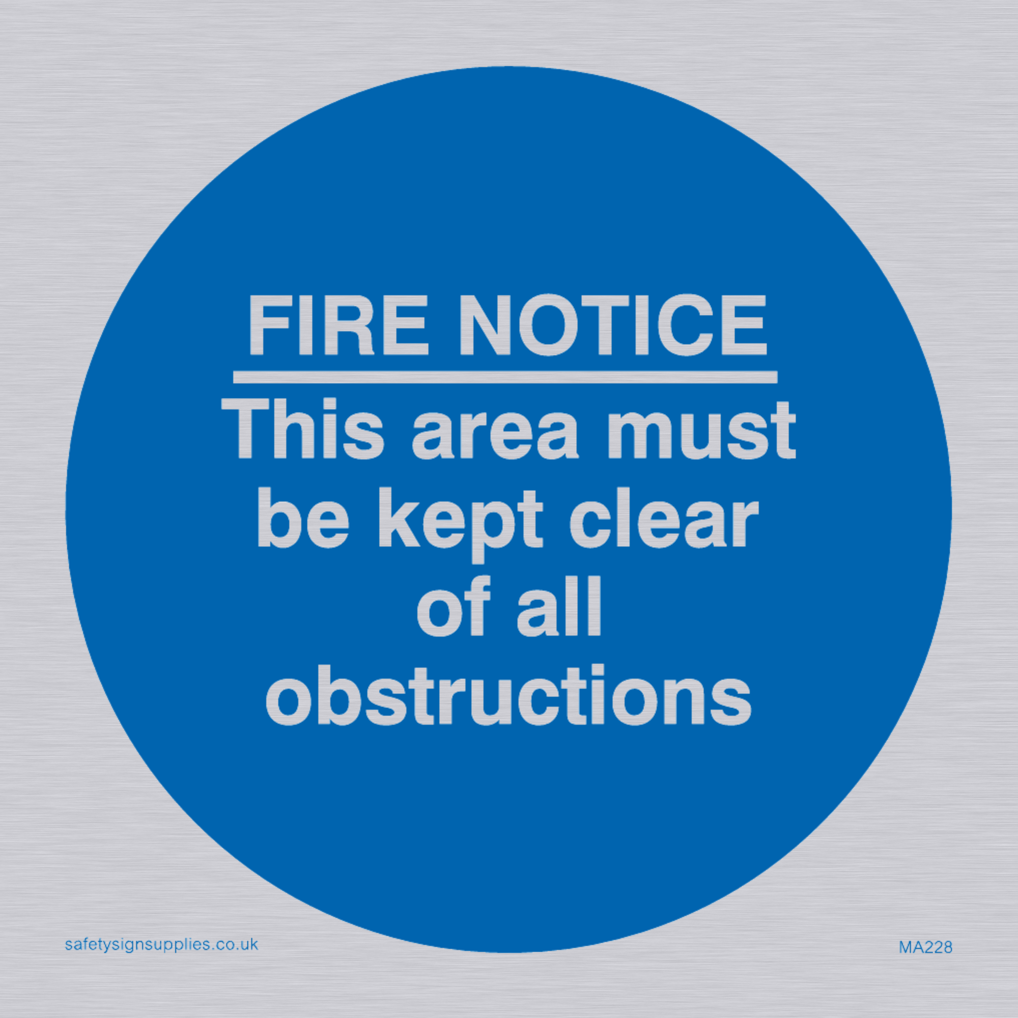 Sign Text: Fire notice this area must be kept clear of all obstructions