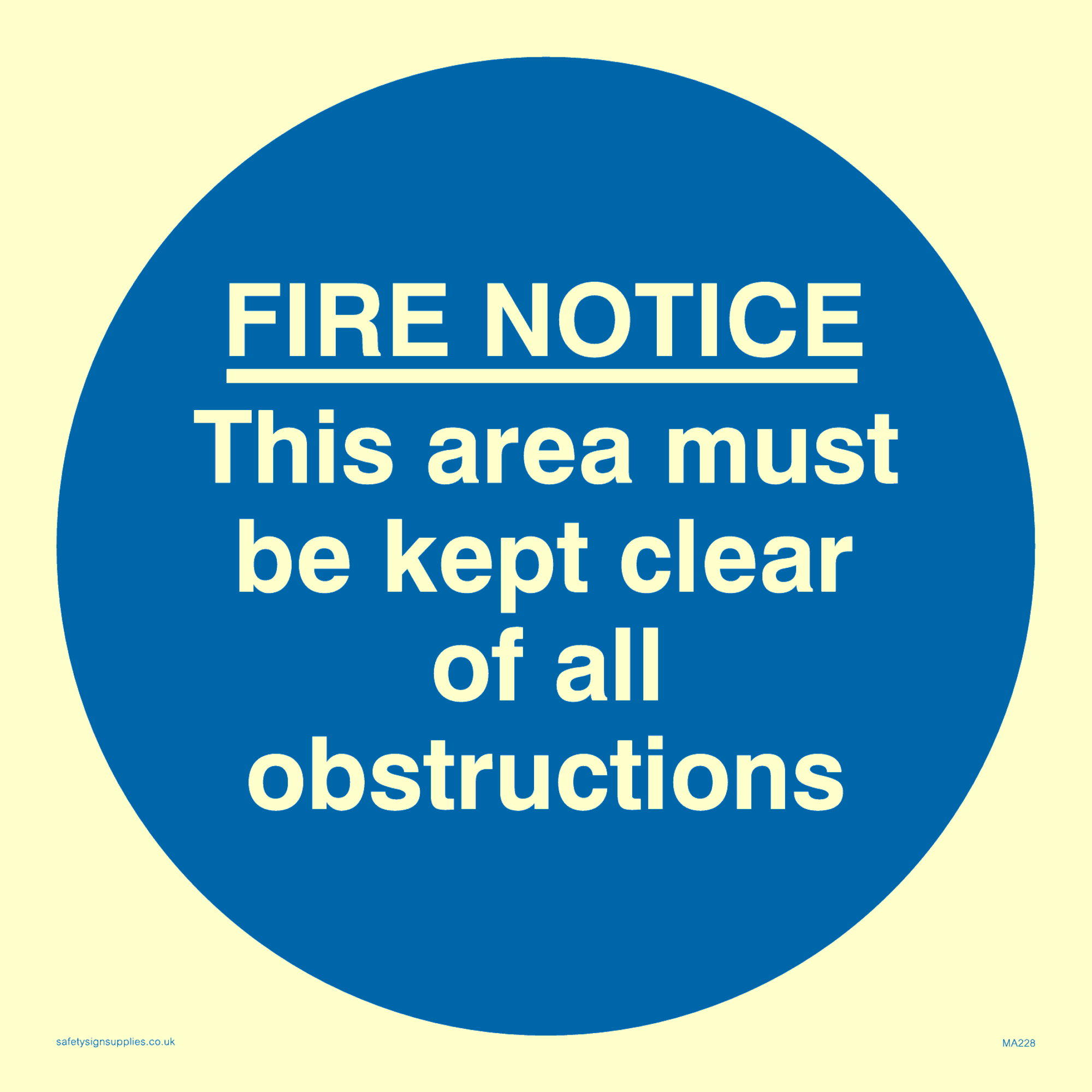 Sign Text: Fire notice this area must be kept clear of all obstructions