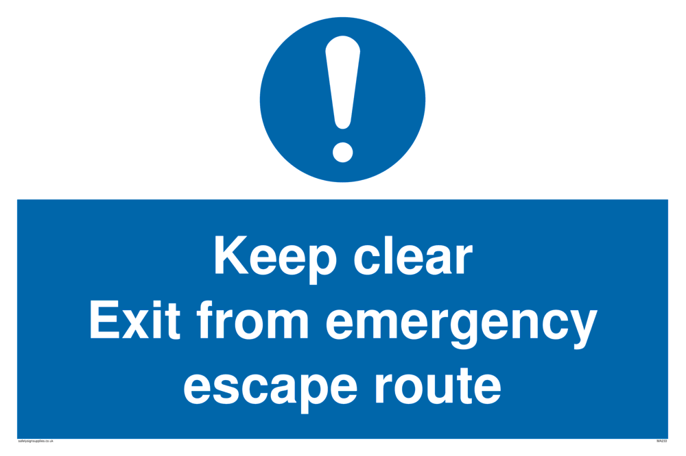 Fire door signs are used on a fire door or emergency door to indicate conditions of use. Keep clear signs indicate an area of location that must be kept clear. This sign is approximately equivalent to A2 paper size. This sign is large.