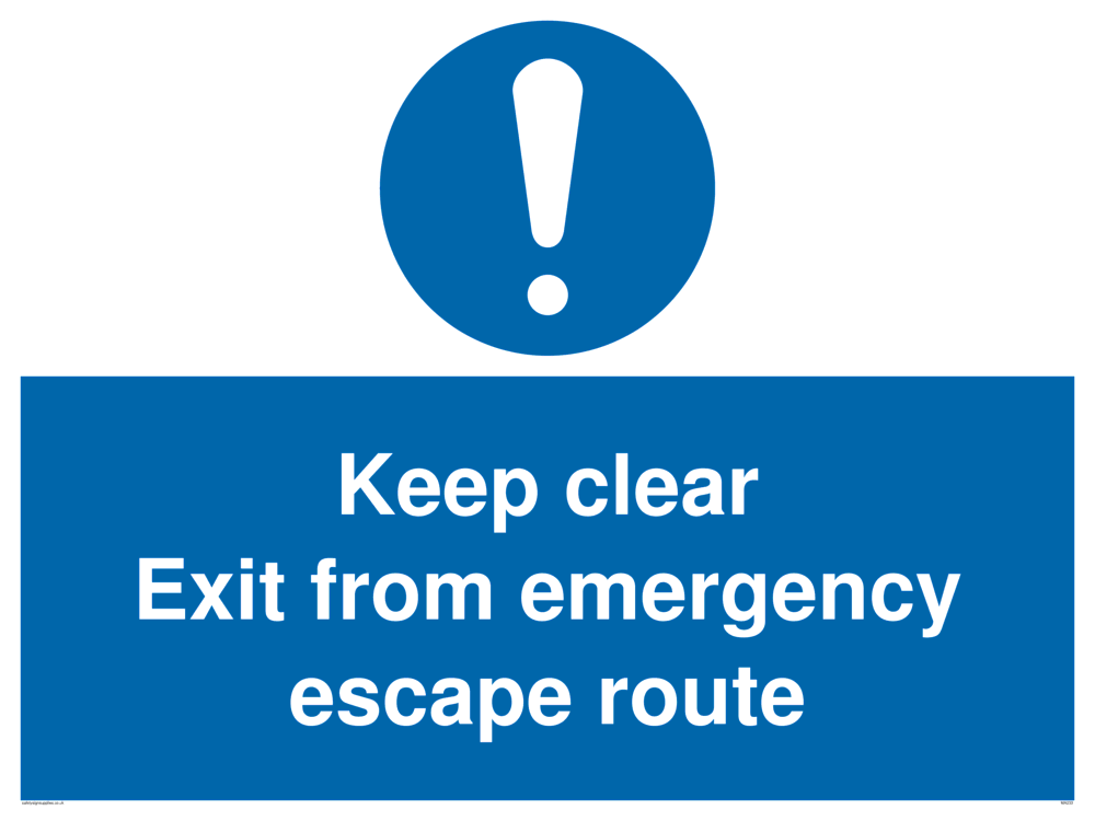 This sign contains a general Mandatory Exclamation Symbol - exclamation mark in white on blue circle background.
