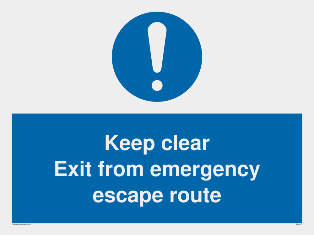 This sign contains a general Mandatory Exclamation Symbol - exclamation mark in white on blue circle background.