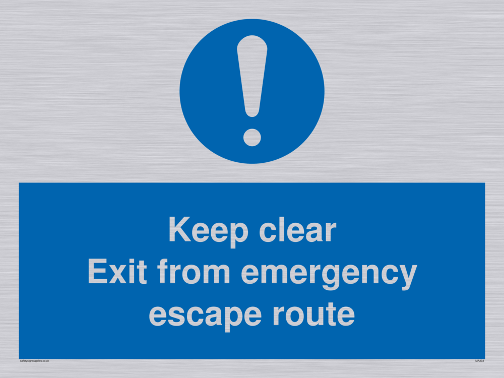 Sign Text: Keep clear exit from emergency escape route