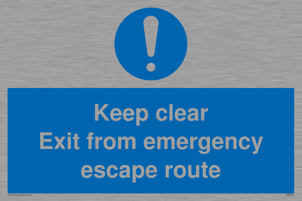 Sign Text: Keep clear exit from emergency escape route