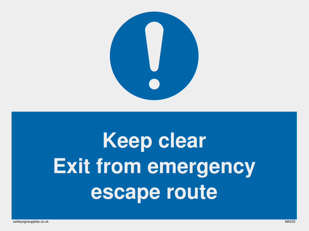 This sign contains a general Mandatory Exclamation Symbol - exclamation mark in white on blue circle background.
