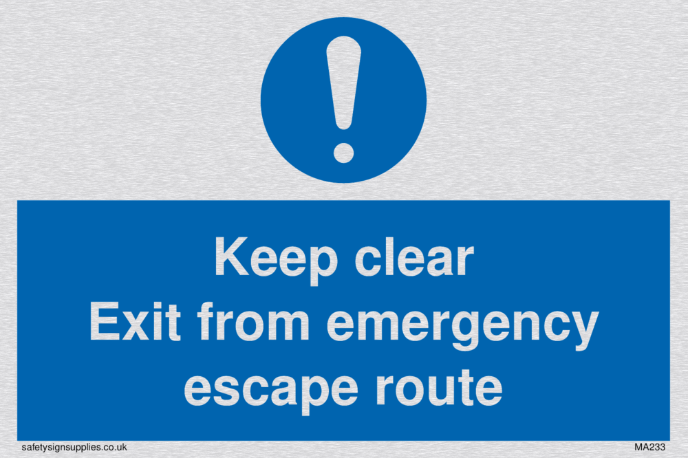 Sign Text: Keep clear exit from emergency escape route