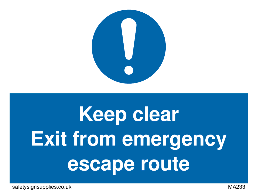This sign contains a general Mandatory Exclamation Symbol - exclamation mark in white on blue circle background.
