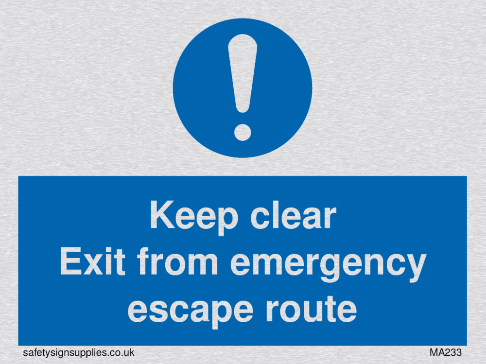This sign contains a general Mandatory Exclamation Symbol - exclamation mark in white on blue circle background.