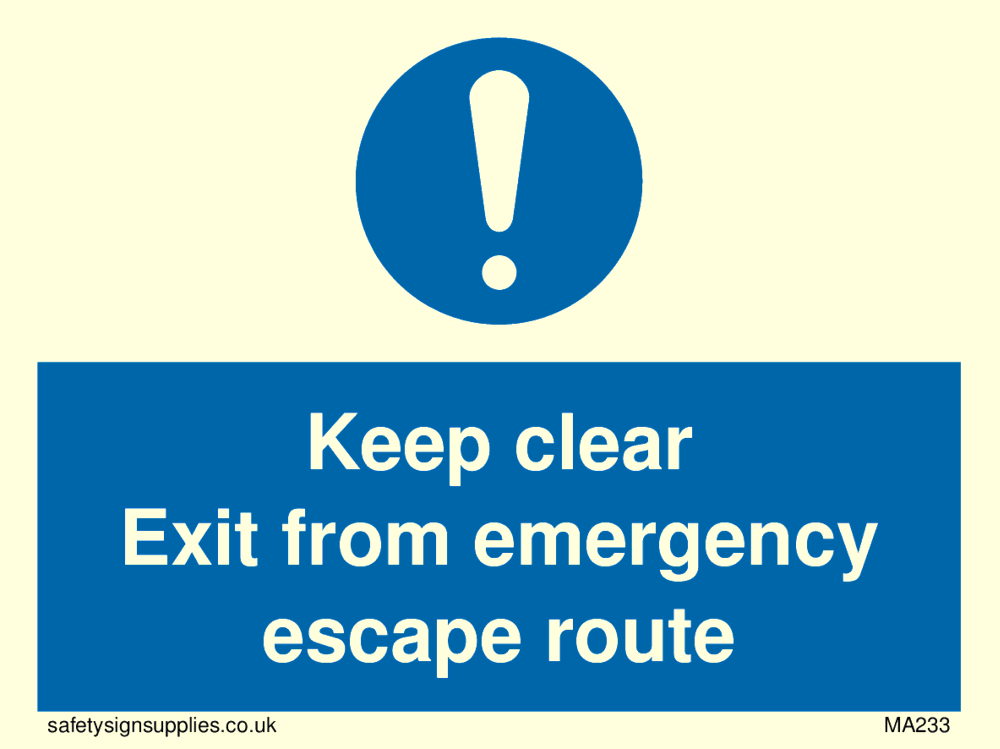 This sign contains a general Mandatory Exclamation Symbol - exclamation mark in white on blue circle background.